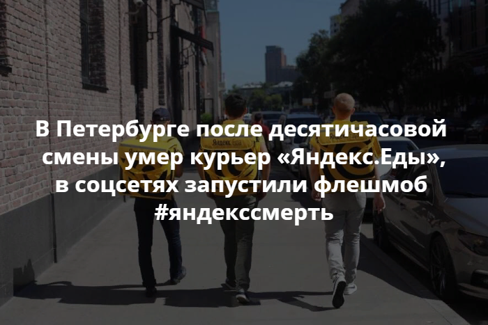 В Петербурге после десятичасовой смены умер курьер «Яндекс.Еды», в соцсетях запустили флешмоб #яндекссмерть. Что об этом известно