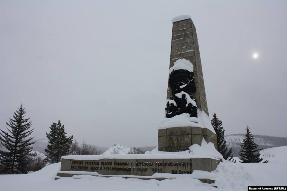 Посёлочек Апрельск, памятник жертвам Ленского расстрела (Ленский – потому что бассейн Лены и Ленские прииски). Здесь в 1912 году правительственные войска стреляли в рабочих, требовавших повышения зарплаты и улучшения условий труда. Убили, по примерным данным, 270 человек, ранили 250. И Цусима, и Ленский расстрел приблизили революцию. События 1912 года стали одной из сюжетных линий романа Вячеслава Шишкова "Угрюм-река". Заглавный образ – собирательный; основные прототипы Угрюм-реки – Витим и Нижняя Тунгуска.