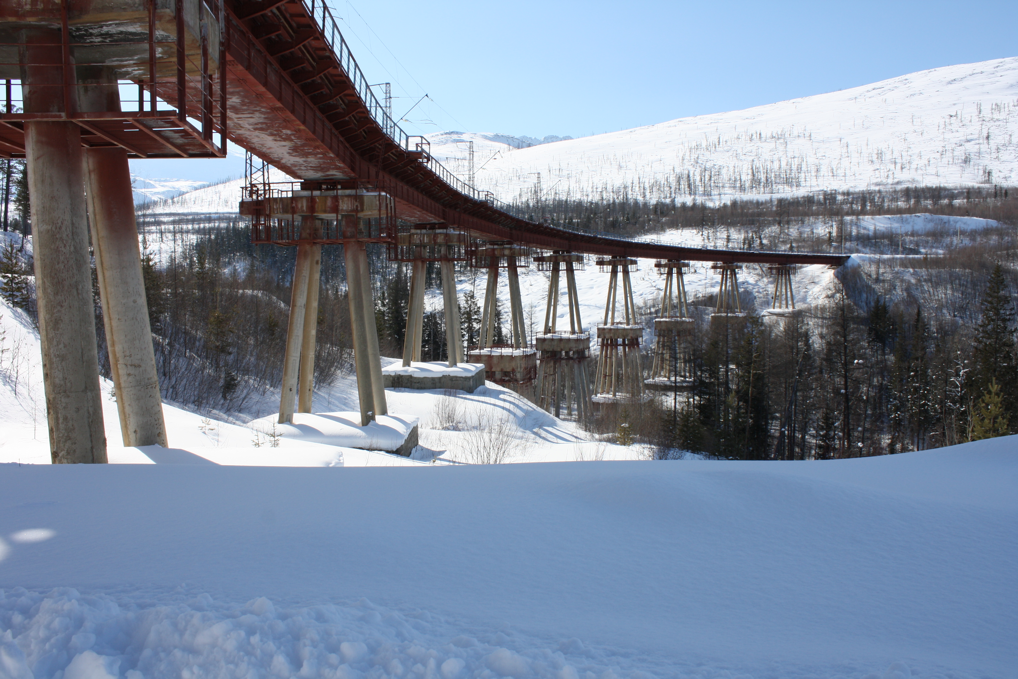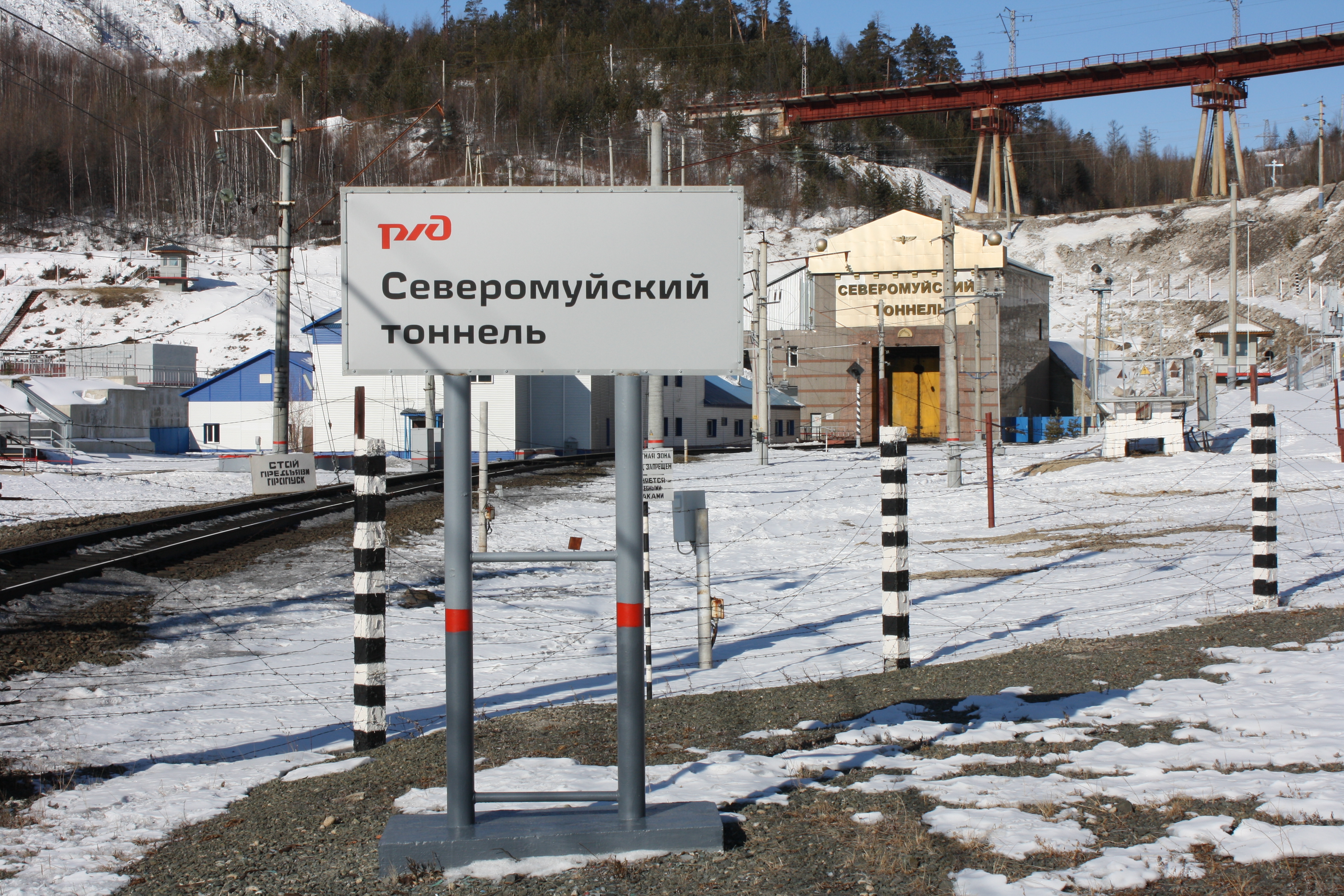 Вход в Северомуйский тоннель – самый длинный в России (15 километров сквозь хребет). Введён в строй в 2003 году, до этого поезда шли по долгому серпантинному обходу, через "Чёртов мост" на высоких двухъярусных ножках. Теперь здесь хотят бить второй тоннель.