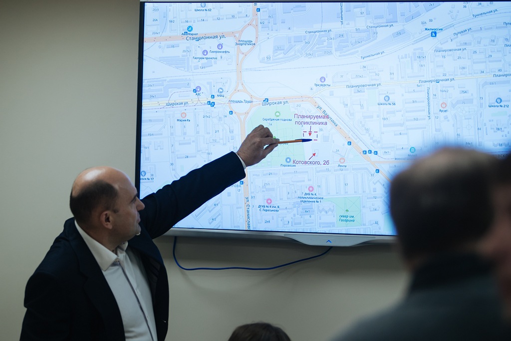 Белокобыльский продемонстрировал на карте планируемый участок для застройки — это территория между ДК «Металлург» и площадкой под будущую поликлинику, которая расположена рядом с садом Кирова, но никак не внутри парка.