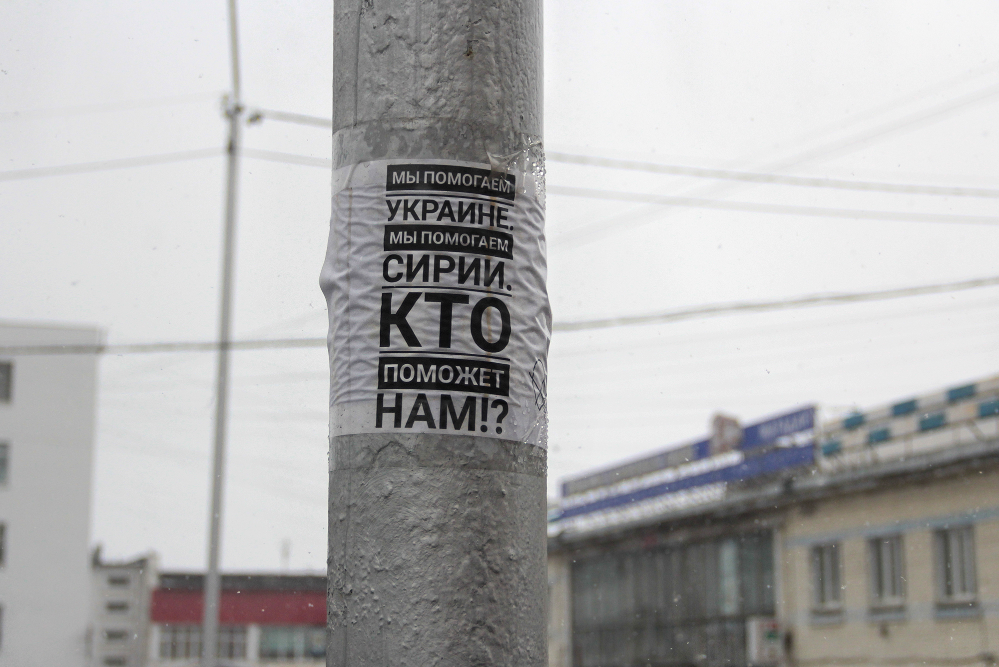 Как и в прошлый раз, присутствует слоган "Мы помогаем Украине. Мы помогаем Сирии. Кто поможет нам?!", приводится цитата Льва Толстого "Армия есть не что иное, как собрание дисциплинированных убийц". На нескольких листовках написано "Нет коррупции", на одной слоган "Проявим позицию – встанем в оппозицию".