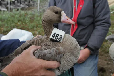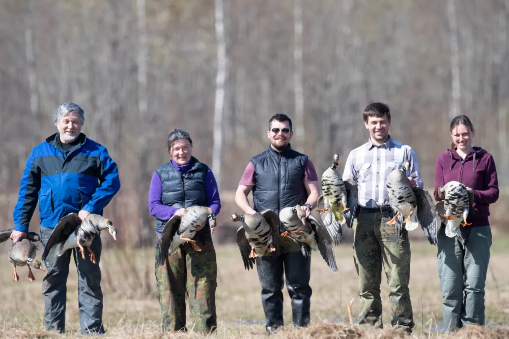Во время миграции птицы могут столкнуться с серьезными проблемами. Например, изменение землепользования может повлиять на географию миграционных путей и распределение мест остановок белолобых гусей (Anser albifrons). При этом снижение антропогенной нагрузки не всегда благотворно для птиц. Во время миграции гуси обычно делают остановки на сельскохозяйственных угодьях, рядом с крупными водоемами. В нашей стране в начале 1990-х сильно, а кое-где катастрофически сократилась площадь посевов. Изменилась и структура землепользования. В результате во многих районах исчезли места, где гуси могли бы отдыхать и кормиться во время весеннего пролета. Перелетная стая больше не останавливается в таких местах, потому что они зарастают лесом, а птицам нужен хороший обзор, чтобы вовремя заметить хищника.