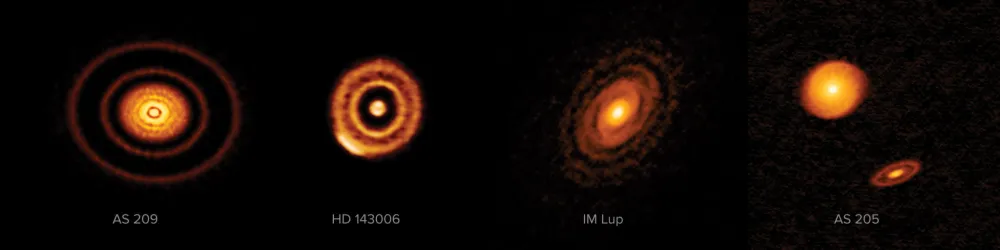 снимки протопланетных дисков, сделанные отдельным узлом сети EHT — интерферометром ALMA