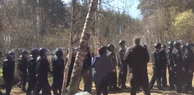 По ее словам, правоохранители привезли бурильную технику и пытаются пронести ее к месту строительства. Ранее Activatica сообщала, что жители близлежащих поселков уже две недели дежурят у въезда в лес и блокируют проход строителей.
