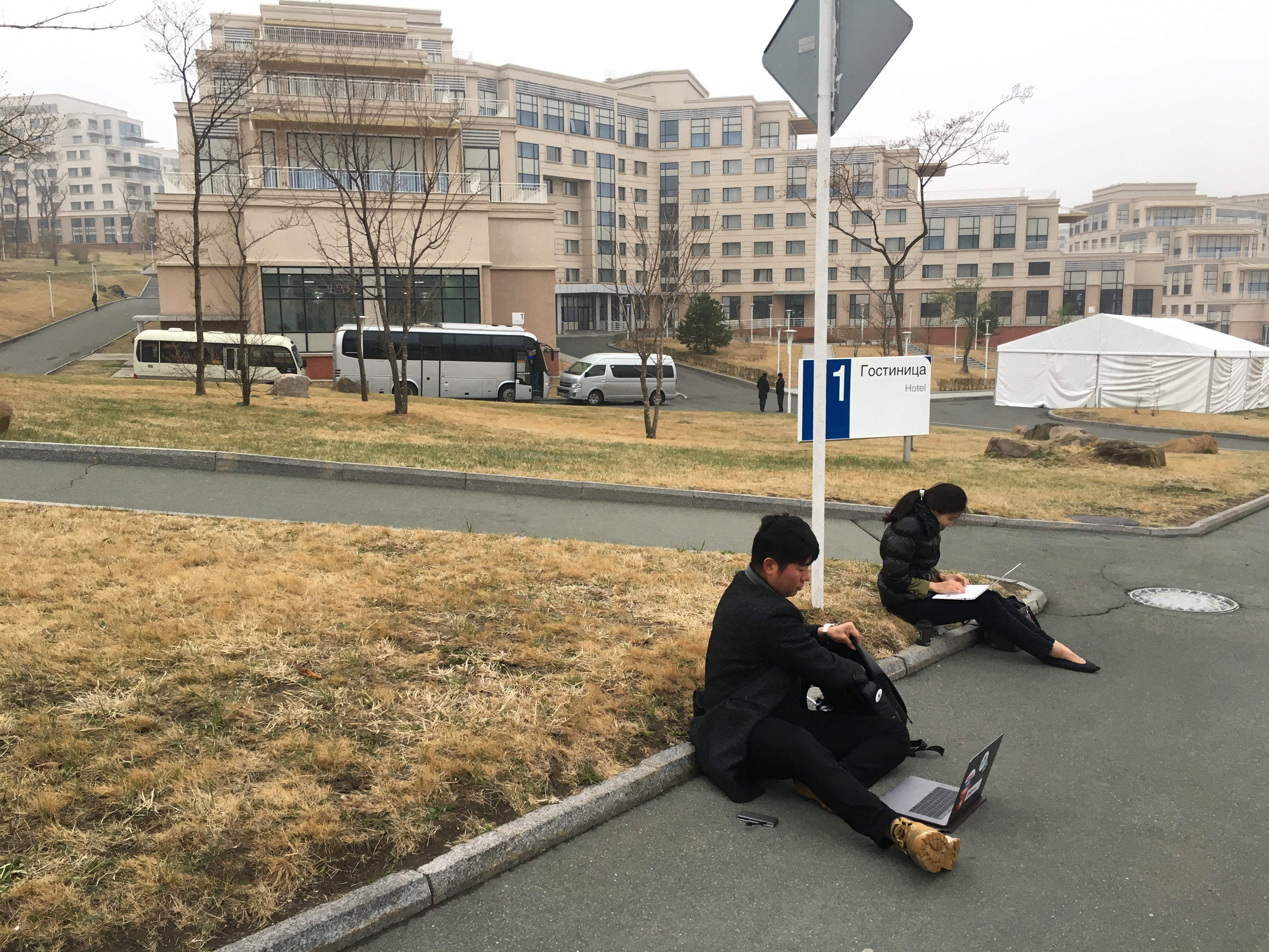 Во Владивостоке и на острове Русский уже несколько дней дежурят журналисты из России, Японии и Южной Кореи, но официальной информации о предстоящей встрече очень мало. Лишь по некоторым деталям происходящего в городе и на острове понятно, что идет подготовка к встрече.