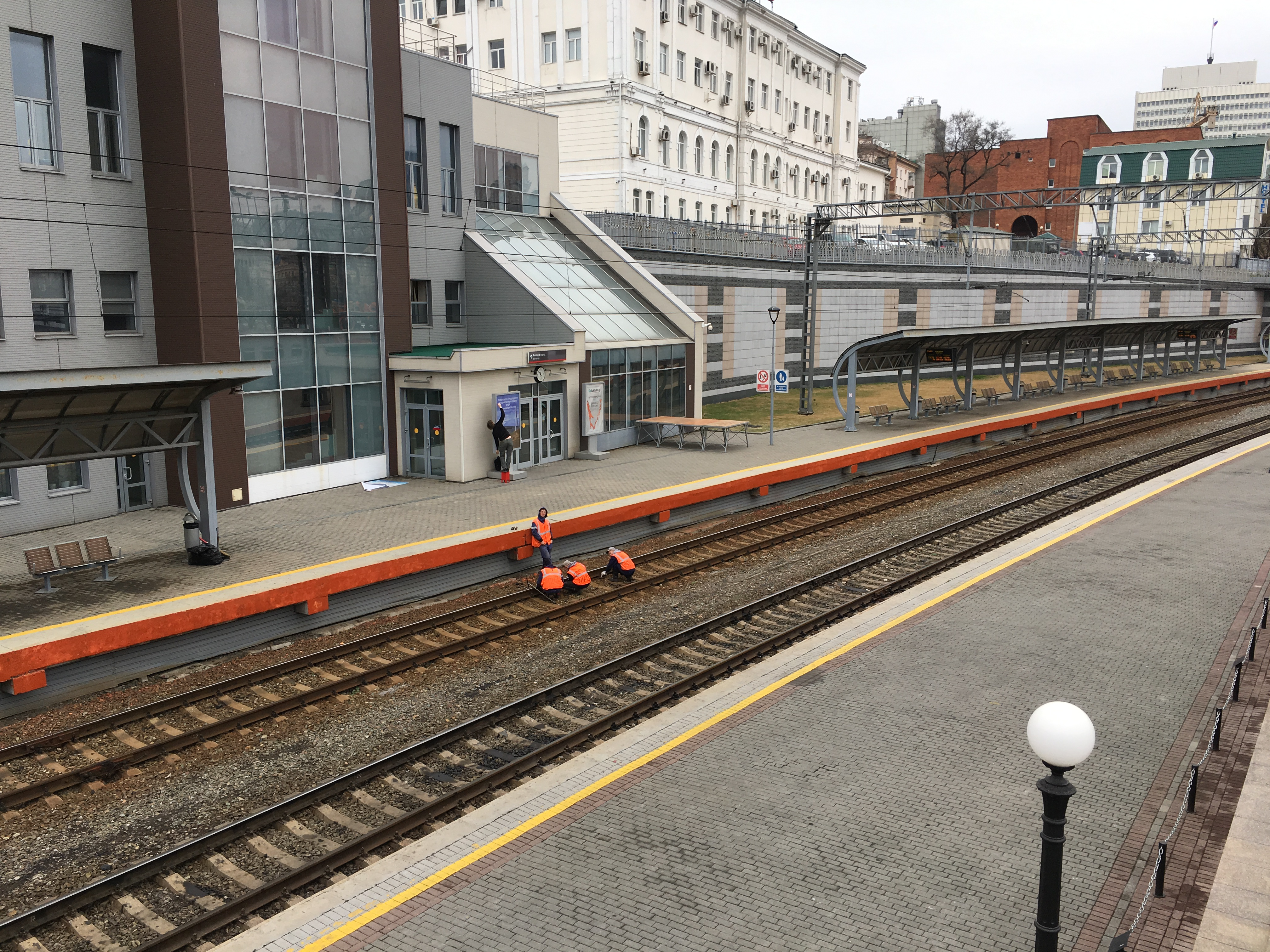 Рядом с вокзалом закрыли несколько круглосуточных закусочных – там нет еды и персонала. На железнодорожных путях заметна подготовка – люди в ярко-оранжевых жилетах что-то ремонтируют.