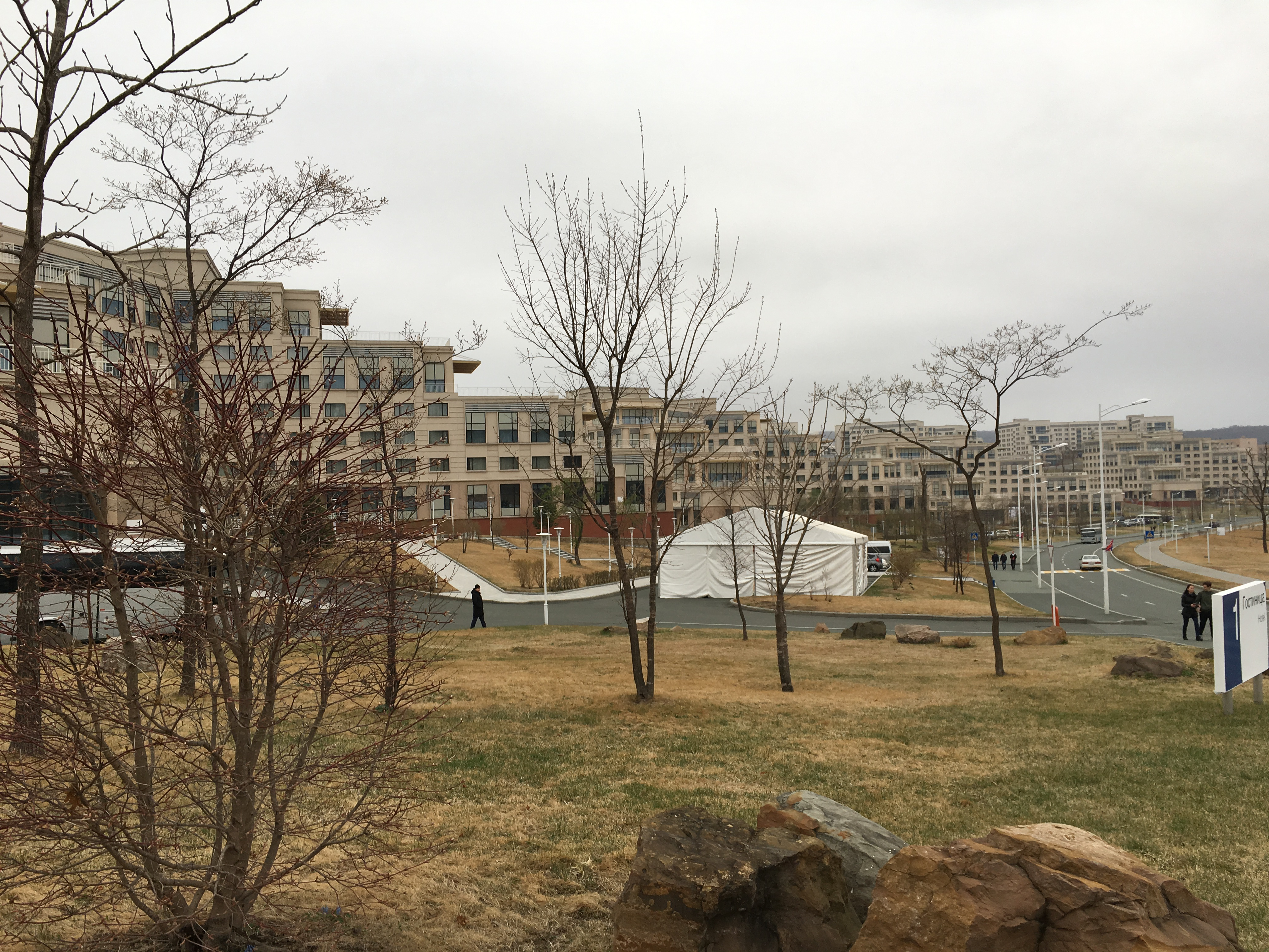 Накануне приезда Ким Чен Ына на территории кампуса в асфальте спешно заделывают дыры. А корпус S отмывают особенно тщательно.