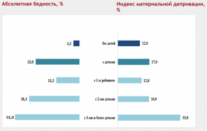 Результаты. Новый комплексный подход в оценке бедности пока показывает, что в некоторых социальных группах — например, в многодетных семьях — уровень бедности сильно выше, чем средние цифры, рассчитанные «по-старому».