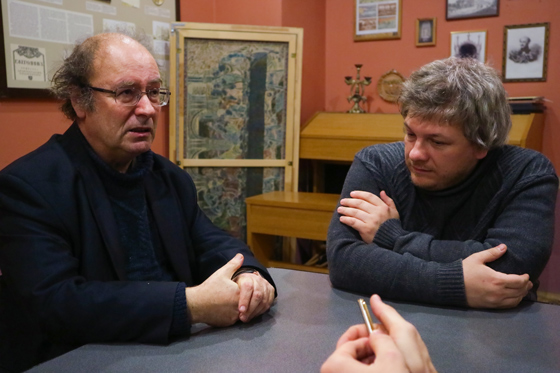 Оркестру сильно помогал Владимир Шуляковский — струнами, смычками и так далее — и пытался с ним как-то заниматься. А здешний хор какое-то время возглавлял Валентин Иванович Нестеров — это вообще основатель первого в Советском Союзе камерного хора, который стал петь барокко не громовыми голосами с болтанкой в полтона (как Владислав Александрович наш любимый, Чернушенко), а совершенно по-другому. Я его позвал, это кумир моей юности.