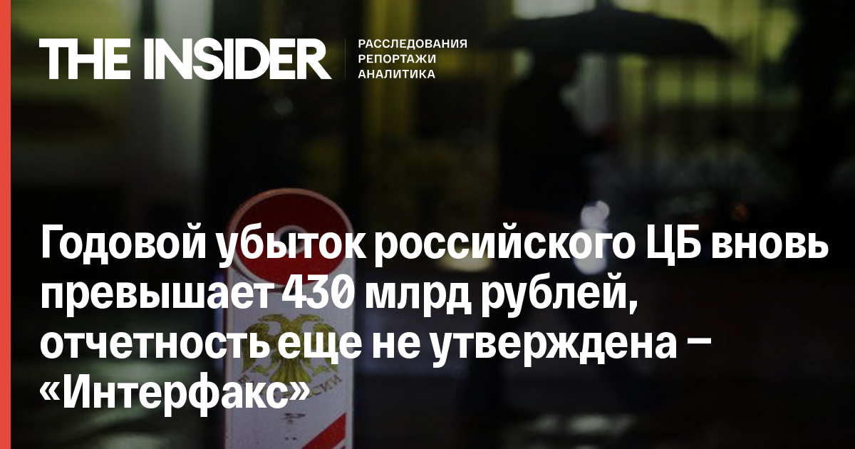 Годовой убыток российского ЦБ вновь превышает 430 млрд рублей, отчетность еще не утверждена — «Интерфакс»