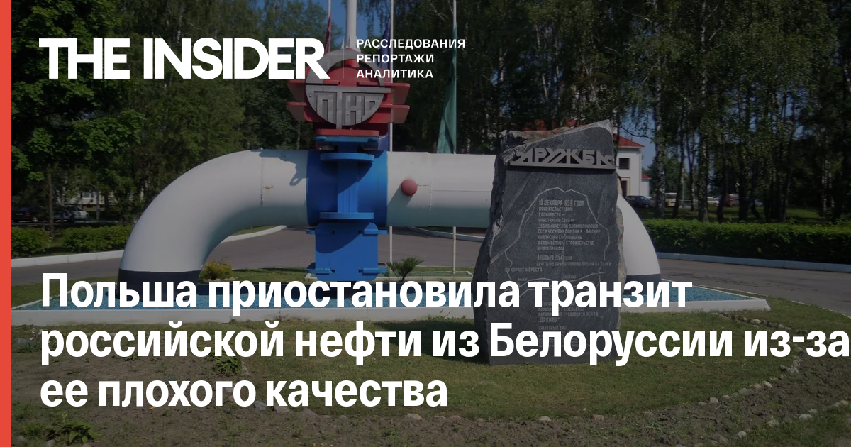 Транзит российской нефти по нефтепроводу «Дружба» из Белоруссии в Польшу приостановлен из-за ее плохого качества. Об этом сообщает агентство БелТА.