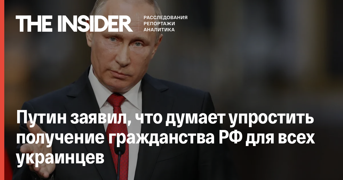 Владимир Путин сообщил о планах предоставлять гражданство в упрощенном порядке не только жителям так называемых Донецкой и Луганской народных республик, но и всем украинцам.