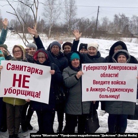 - В феврале санитарки и младшие медицинские сестры Анжеро-Судженской горбольницы вступили в профсоюз "Действие", чтобы противостоять сокращениям и переводу в уборщицы.