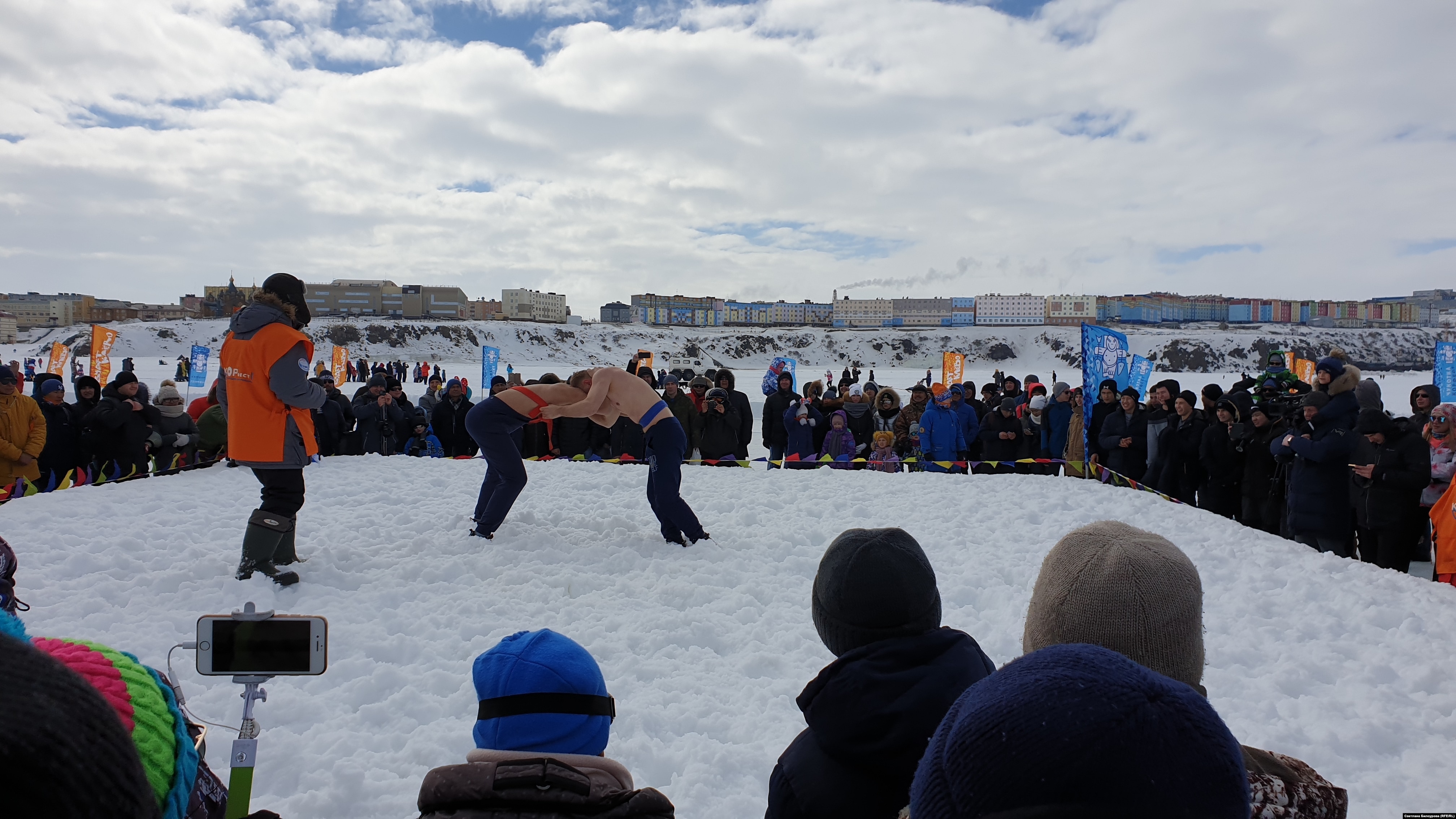 В программе фестиваля национальная борьба, когда обнаженные по пояс участники проводят схватки прямо на снегу. Соревнования на собачьих упряжках больше всего привлекают детей, они выстраиваются в длинную очередь, чтобы прокатится на нартах.