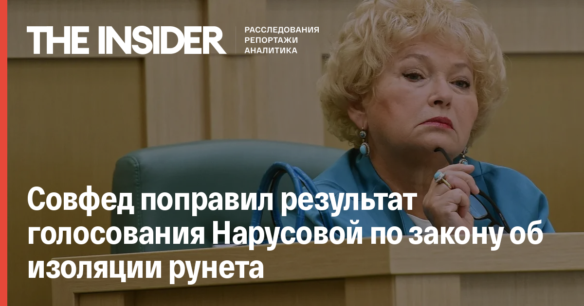 Ранее сенатор Людмила Нарусова заявила, что 22 апреля голосовала против принятия закона, однако ее волеизъявление было учтено противоположным образом. «Я голосовала против закона о суверенном интернете. В день голосования в Совете Федерации были перебои с электричеством и мы без света сидели. Видимо, из-за этого неправильно отобразился мой голос», — поясняла Нарусова «Открытым медиа».