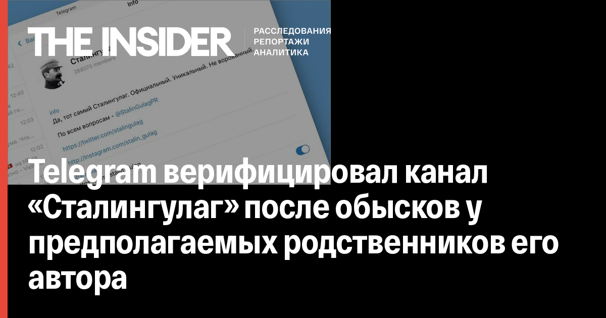 Telegram верифицировал канал «Сталингулаг» после обысков у предполагаемых родственников его автора