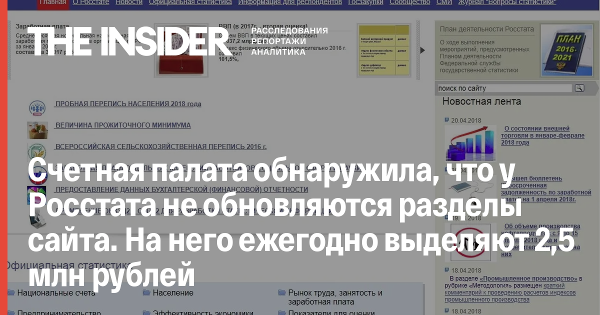 Счетная палата пришла к выводу, что многие разделы и рубрики официального сайта Росстата не обновлялись несколько лет, хотя на его обслуживание ежегодно выделяют 2,5 млн рублей.