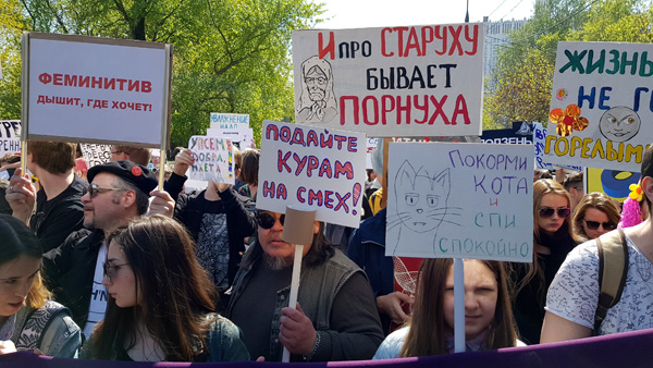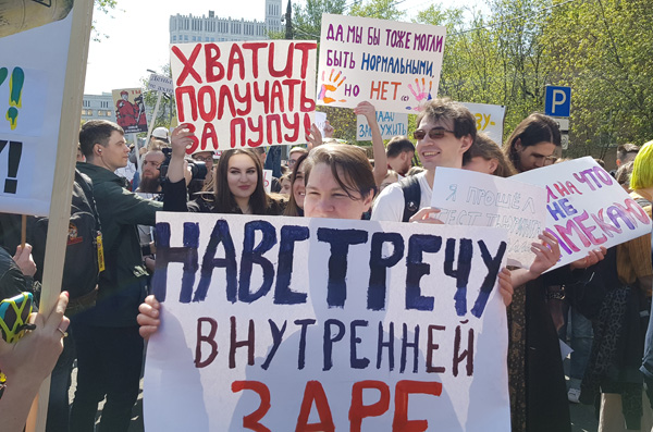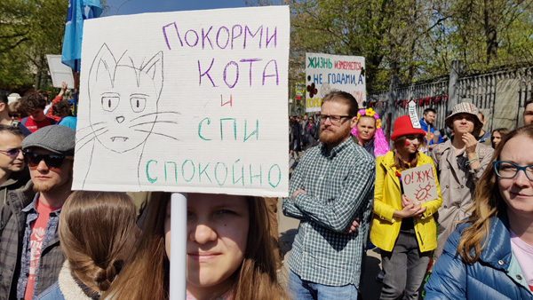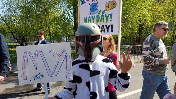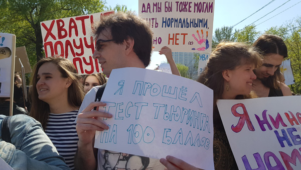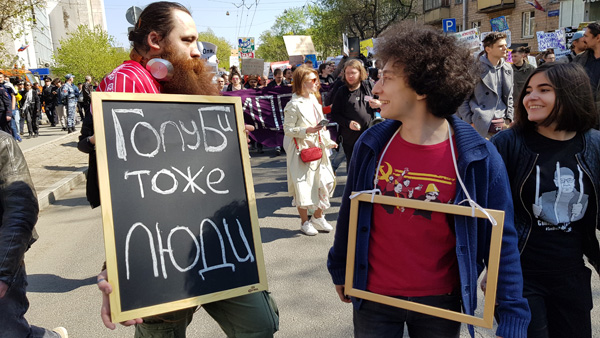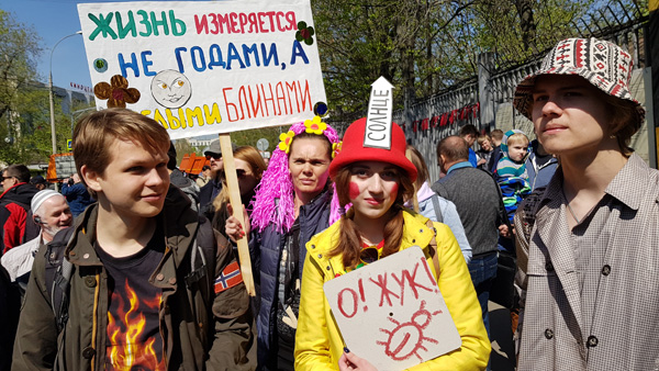 Когда в Питере уже зачистили Невский от противников ЕдРа и распихали задержанных по автозакам, в Москве на Красной Пресне воцарилась атмосфера безумия - скорее праздничного, чем протестного. За колонной ортодоксальных коммунистов следовали анархисты, социалисты с мечтой о минимальной зарплате 300 рублей в час, веганы с лозунгами в защиту животных, борцы со стигматизацией психических заболеваний. Замыкала шествие Монстрация, которая отвлекла на себя внимание всех журналистов. Психоактивисты объясняли, что они не прикалываются.