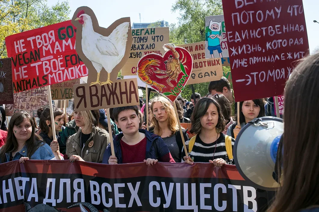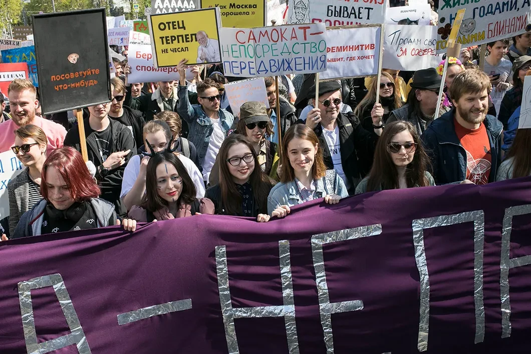 Первомайские шествия в Москве, где можно было встретить сталинистов, феминисток, веганов и монстрантов. Фото и видео