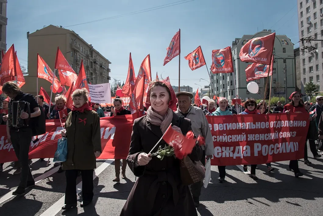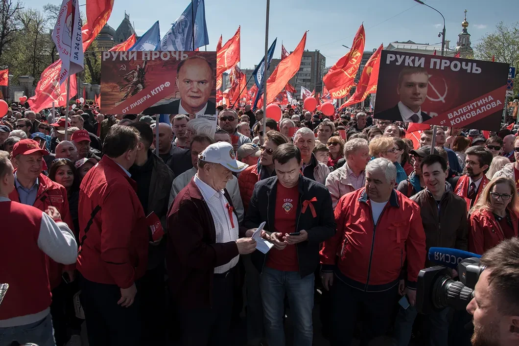 Несколько тысяч человек прошли в составе колонны КПРФ в сопровождении оркестра с Калужской площади мимо Кремля до Театральной площади. Они пели военные песни под баян, несли плакаты с изображением Грудинина и Зюганова, Сталина и Ленина. Участники «Монстрации» (художественной акции в форме демонстрации с намеренно абсурдными лозунгами и транспарантами) шли от Баррикадной до площади Краснопресненской заставы вместе со сторонниками Объединения перевозчиков России, «Левого фронта», участниками движения «Бессрочка» и представителями партии «Коммунисты России». Обе акции были согласованы.
