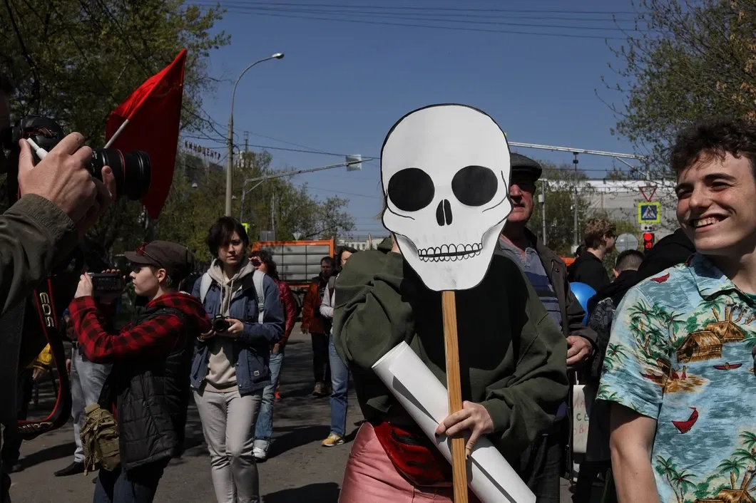 Одна из организаторов колонны «Против пыток и дискриминации» Елена Безрукова говорит «Новой», что сначала митинг против пыток планировалось провести отдельным шествием, но мэрия Москвы отклонила заявку в центре, предложив провести его в Люблино, после чего активисты решили присоединиться к демонстрации, организованной Объединенной коммунистической партией. На митинге также запрещены плакаты в поддержку украинского режиссера Олега Сенцова и фигурантов дела «Нового величия».