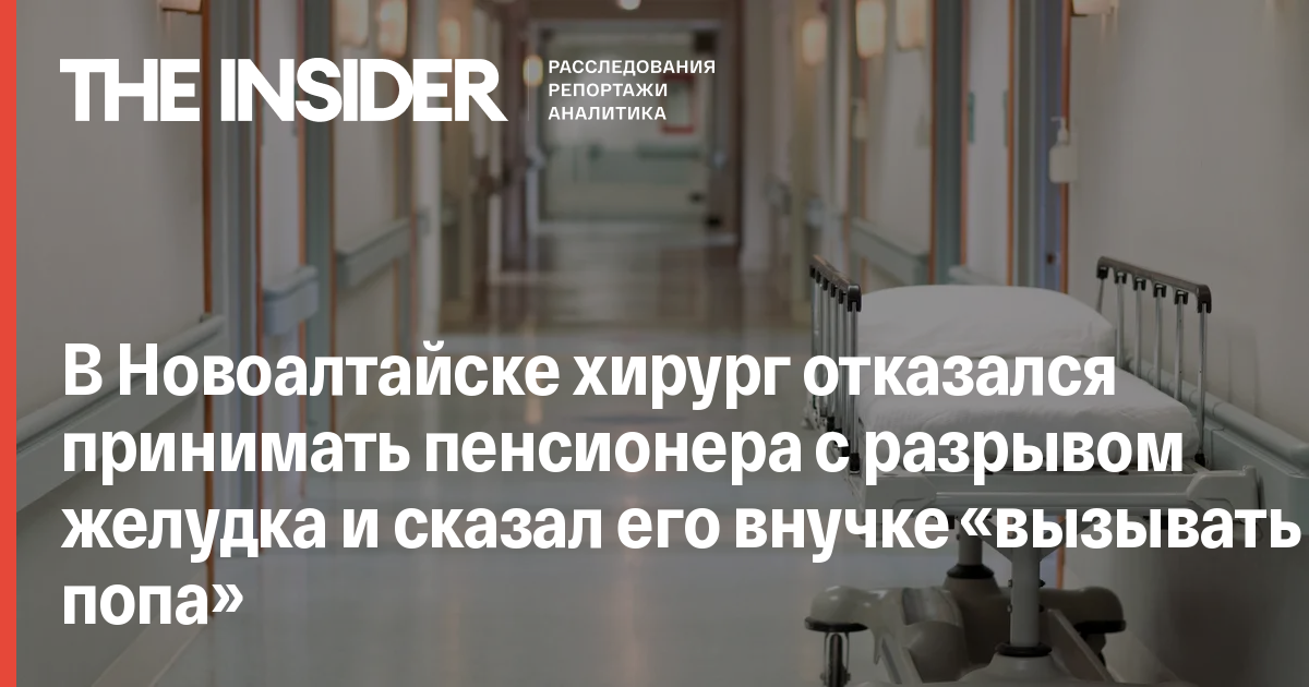 В больнице Новоалтайска дежурный хирург отказался принимать 68-летнего мужчину с разрывом желудка и внутренним кровотечением. По словам внучки пенсионера, врач посоветовал ей «вызвать попа», сообщает местное издание «Толк».