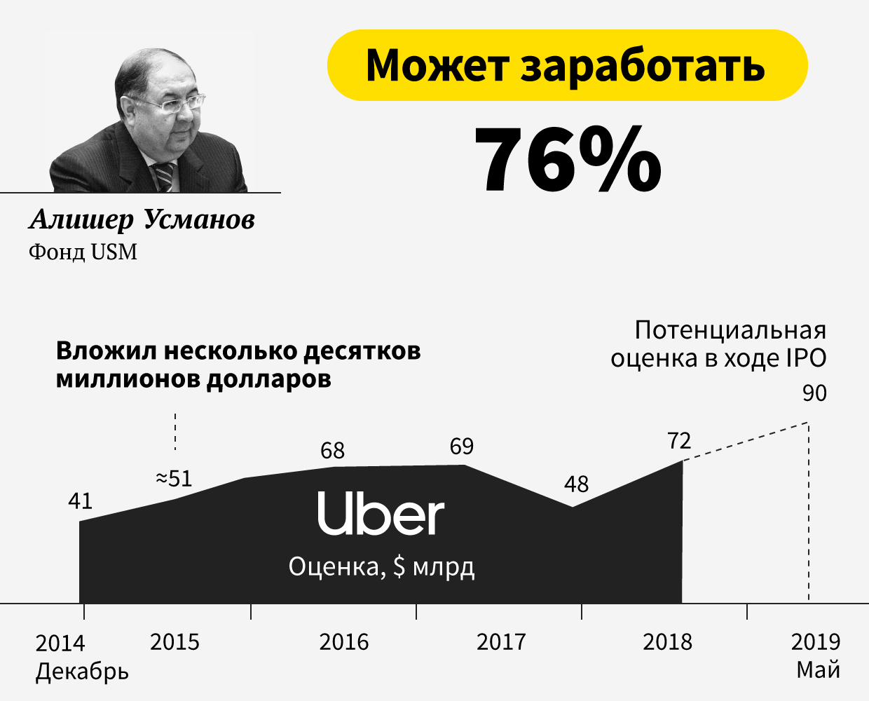 Для Усманова Uber — далеко не первая инвестиция. Вероятно, самой успешной его сделкой были вложения в акции Facebook — спустя много лет из «бермудского архива» выяснилось, что деньги на это Усманов одолжил у «Газпрома». Несколько лет назад Усманов, как он сам рассказывал, переключился на китайские стартапы.