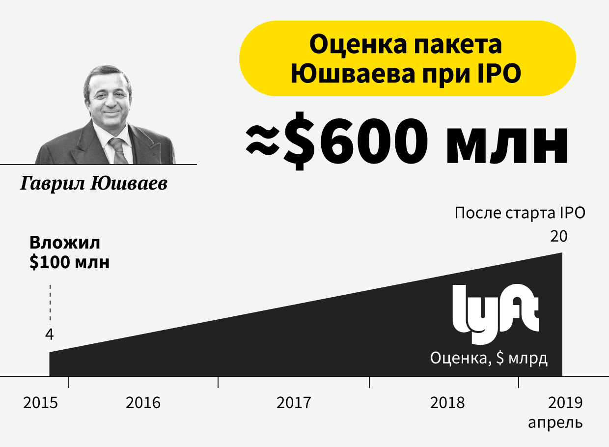Бывший совладелец «Вимм-Билль-Данна» Гаврил Юшваев, похоже, оказался самым расчетливым инвестором: «Пока все бежали в Uber, он был умнее и вложил деньги в его главного конкурента – Lyft», — рассказывал The Bell в прошлом году один из его знакомых. По нашим расчетам, это позволило Юшваеву заработать 5x (если считать по цене размещения Lyft, хотя с тех пор акции компании серьезно упали). Подробно об этой истории мы писали здесь.