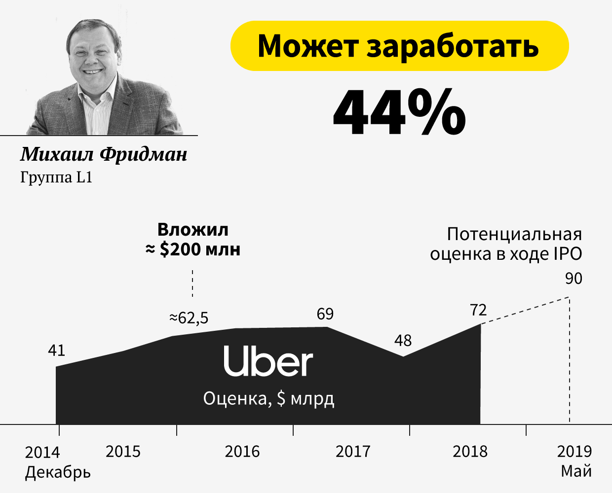 Основатели «Альфа-групп» во главе с Михаилом Фридманом — тоже инвесторы со стажем. Только под управлением фонда Pamplona Capital, которым руководит совладелец Альфа-банка Алекс Кнастер, находятся активы на сумму свыше 6 млрд евро. В Uber совладельцы «Альфа-групп» вложились в начале 2016 года, когда компания уже считалась самым дорогим стартапом в мире.