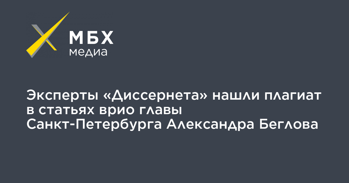 Эксперты научного сообщества «Диссернет» нашли плагиат в научных статьях временно исполняющего обязанности главы Санкт-Петербурга Александра Беглова. Об этом на своей странице в фейсбуке сообщил сооснователь сообщества Сергей Пархоменко.