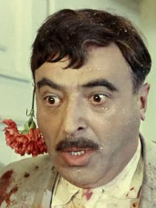 В роли Саахова в "Кавказской пленнице". Фото: www.etush.ru Мастер острохарактерных ролей, по преимуществу комедийных отрицательных персонажей, будь то сластолюбивый Саахов, сребролюбивый Шпак или властолюбивый Карабас-Барабас.