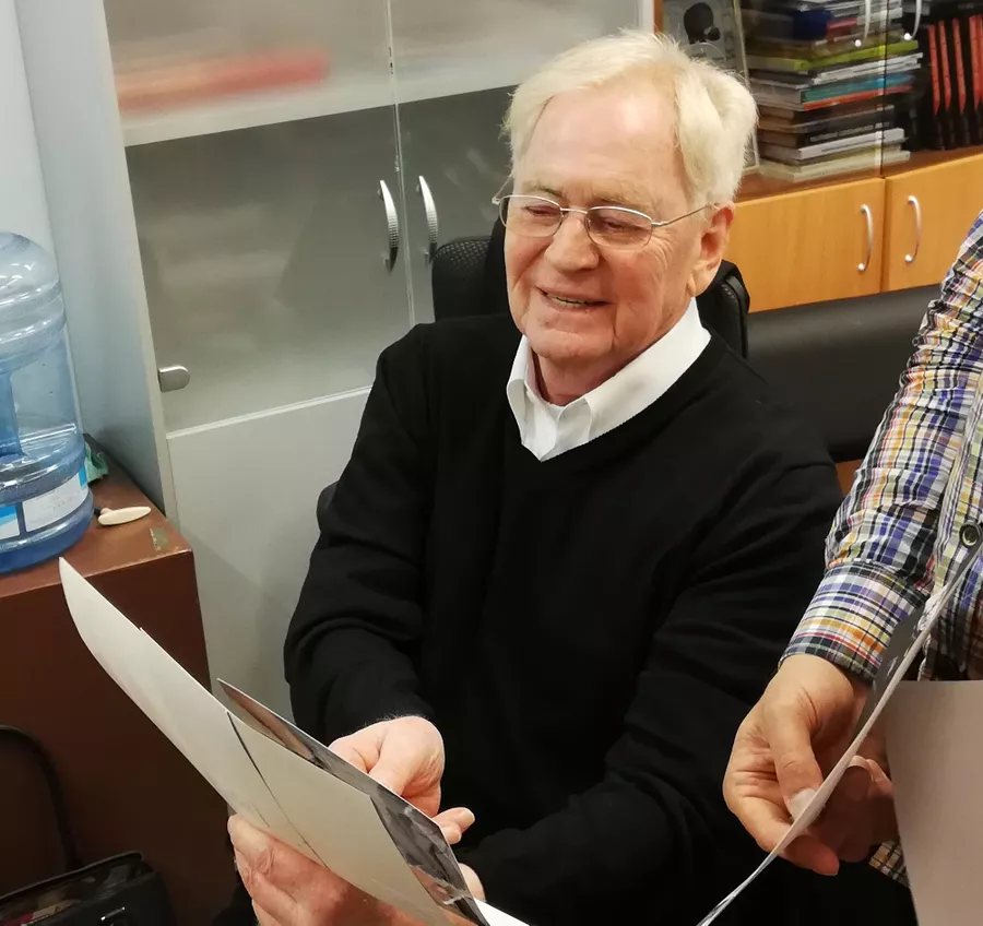 Пока зрители смотрели кино, Юрию Михайлину удалось поговорить с Иштваном Сабо и поприсутствовать при «сочинении кинокадра» из фотографий со съемок последнего фильма Марлена Хуциева.