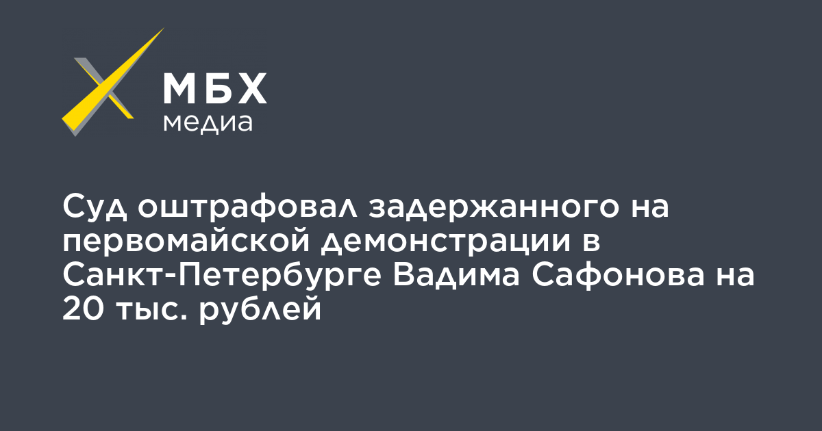 Суд оштрафовал задержанного на первомайской демонстрации в Санкт-Петербурге Вадима Сафонова на 20 тыс. рублей