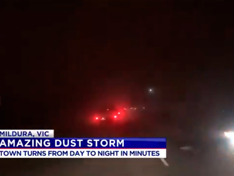 Во второй половине 7 мая мощная песчаная буря обрушилась на город Милдьюра, расположенный в северо-западной части австралийского штата Виктория. Многометровая стена пыли и песка, сопровождавшаяся ветром порывами до 87 км/ч, превратила день в ночь и бушевала около 20 минут, сообщает Stormnews со ссылкой на австралийскую вещательную корпорацию ABC.