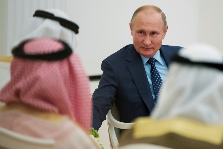 Президент России Владимир Путин на встрече с наследным принцем Объединенных Арабских Эмиратов Абу-Даби шейхом Мухаммедом бен Заидом Аль-Нахайяном. Фото: Pavel Golovkin/Reuters