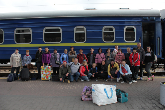 «Открытая группа». Фото из проекта «Исключительно для внутреннего пользования». 2015 Варга: Помню, Ярик Футымский, который тогда тоже там был, позже мне сказал, что проект «Те же самые места» ни много ни мало «вернул ему веру в современное искусство». Я представляю, как странно было внезапно увидеть сочетание этих разных людей с такими абстрактными деталями, как «место» или «история». И наверняка вся суть в том, чтобы в результате эти абстракции физически «прошили» людей, реактуализировали сами себя не только на уровне пространственном, а, скорее, на уровне памяти и воображения, стерли их отчужденность от собственного контекста. Мы представляли, что людям в «Исключительно для внутреннего пользования» будет интересно после групповой фотографии на вокзале на секунду понять, что они 18 часов были частью сообщества, которое по приезде в Киев растаяло на глазах. Вообще существование в истории группы проекта «Исключительно для внутреннего пользования» само по себе интересно. И хотя его можно повторить в любой стране, тогда у нас получился «отрывок» конкретного социального и информационного контекста и даже просто отдельного дня. Кипы книг, наполненных всей информацией, что люди читали и слушали в одном вагоне метро на трех станциях дороги между вокзалом и арт-центром, до сих пор пылятся где-то в Detenpyla.