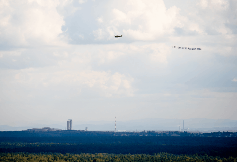 В Катовице самолет пролетел над 13 местами, каждое со своей историей и сопутствующими нарративами. Историей, связанной с различными средами, ячейками и сообществами. Те, кто видел баннер, наверняка задавались вопросом, кто эти «мы» и «вы», и наверняка отвечали на него каждый по-своему. Эти индивидуальные истории, к сожалению, невозможно задокументировать. Но я надеюсь, что все это дало повод переосмыслить вопросы, всплывающие в связи с присутствием в городе заброшенного еврейского кладбища или пустого постамента от памятника советскому солдату, напоминающего о советском наследии. Задуматься об индустриальной мощи, которой Катовице обладал в прошлом — в городе сохранилась нерабочие шахты. О локальных культурных процессах, представленных в экспозиции национального музея, и т.д.