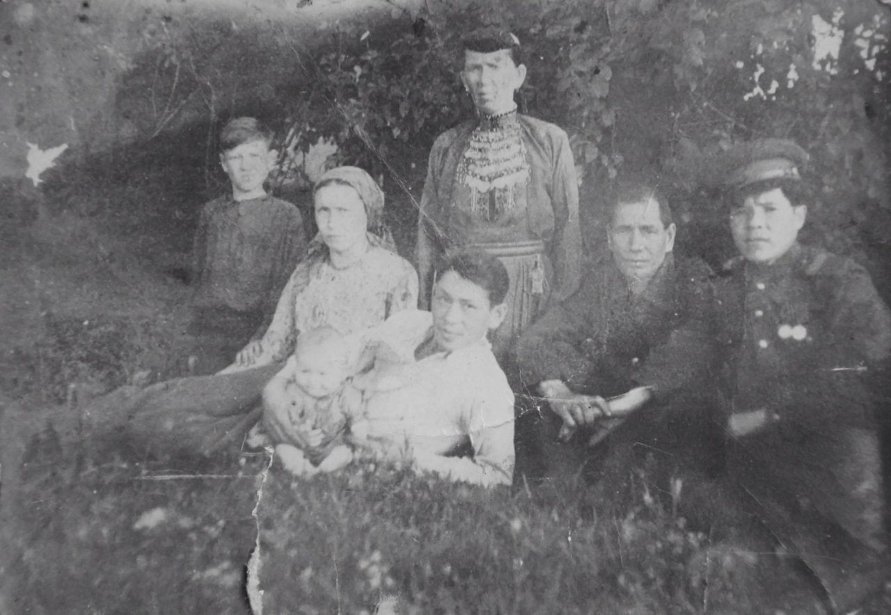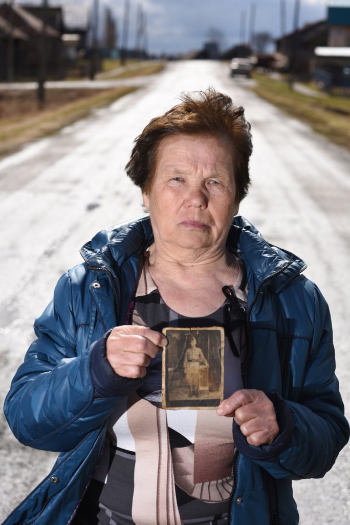 Жительница деревни Сарсы с фотографией деда. Свердловская область, 2018 г.Фото: Александр Сорин, Федор Телков/Проект "Урал мари. Смерти нет" Но не потому что им так выдали, а просто их семьи живут в деревне с самого ее основания в XVIII веке, у них одни и те же прадедушки и прабабушки и одинаковые фамилии.
