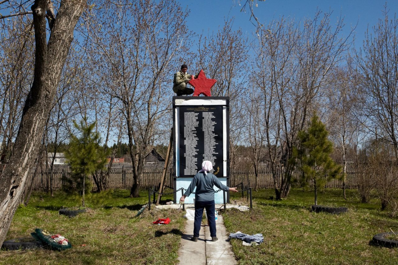 Покраска памятника накануне 9 Мая. Деревня Верхний Потам, Свердловская область, 2013 г.Фото: Александр Сорин, Федор Телков/Проект "Урал мари. Смерти нет" Иногда ветераны уже после смерти снились своим родственникам с просьбой кормить их на День Победы.