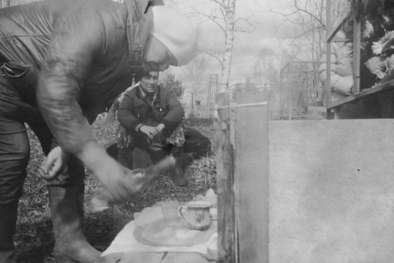 На кладбище, 9 Мая, деревня Верхний Потам, Свердловская область, 2018 г.Фото: Александр Сорин, Федор Телков/Проект "Урал мари. Смерти нет" Мы были все в шоке. После этого мы всегда стараемся 9 мая ходить. Порядок там сделаем, постряпаем, принесем. Всегда стараемся поздравить его, 100 грамм ему налить и поговорить. И еще сигареточку всегда зажигаем. А там он так радуется! Прямо, знаете, так сигаретка горит. Так здорово, как будто живой человек».