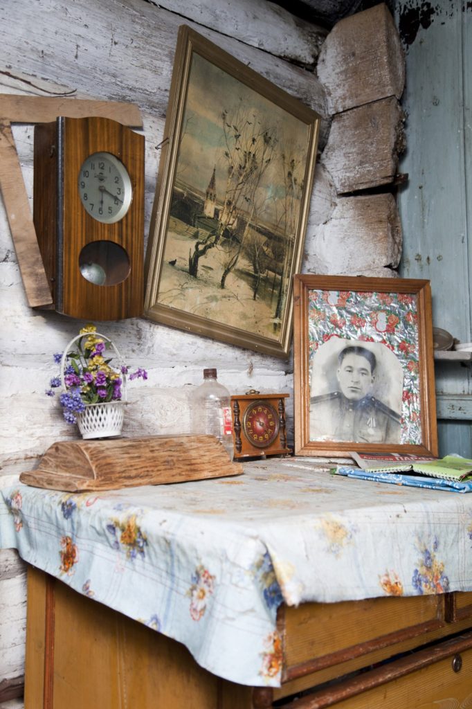 Житель деревни Верхний Потам с фотографией отца. Свердловская область, 2018 г.Фото: Александр Сорин, Федор Телков/Проект "Урал мари. Смерти нет" «Свекор ветераном войны был, много пил, — рассказывает Наталья Шуматова из деревни Артемейкова. — И как-то дочь его говорит: “Вот умрешь, буду приходить к тебе на 9 мая и выливать целую бутылку водки на могилу!” Так и вышло. Ходит теперь каждый год».