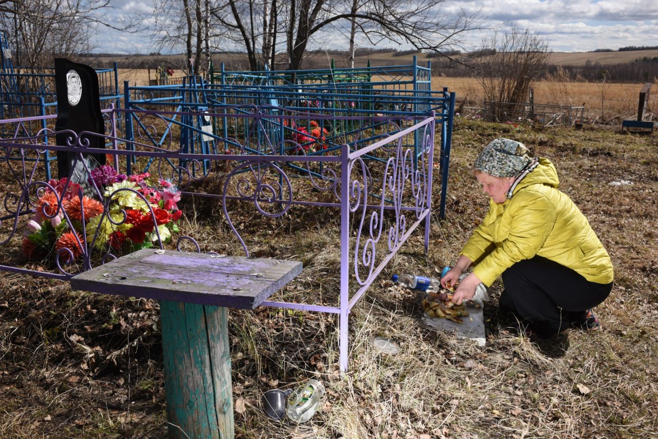 Обряд «кормления». Кладбище, 9 Мая, деревня Верхний Потам, Свердловская область, 2018 г.Фото: Федор Телков «Бабушка один раз сон увидела, — вспоминала Галина Васюкова из деревни Сызганка Пермского края. — Мне, говорит, Петя приснился — про мужа своего. Он сказал: “Вот, вы приходите ко мне на семик, на день рождения. Не ходите ко мне в такие дни. Ходите лучше 9 мая”.