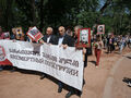 Участники антипутинского марша и акции памяти жертв сталинизма объединились в парке и скандировали "Путин хуйло", "Грузия свободна".