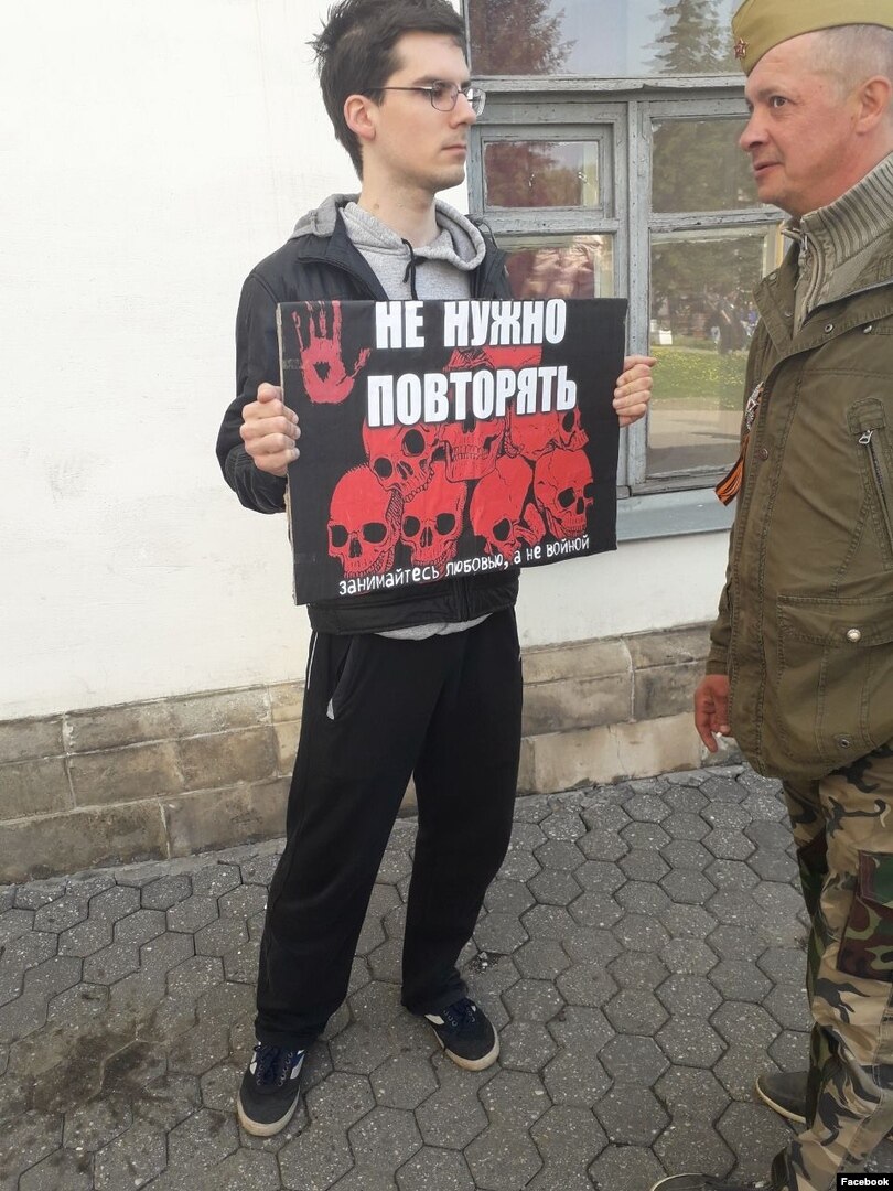 В День Победы Александр Юборс вышел в центр Ярославля на одиночный пикет против пропаганды милитаризма. На плакате, который держал в руках Александр, было написано “Занимайтесь любовью, а не войной”. 20-летний активист написал на своей странице в социальной сети “ВКонтакте”, что решил выйти на пикет после того, как недавно пересмотрел свой альбом школьных фотографий. “И увидел в нём нарисованные танки, истребители, солдат на марше. Подпись: "С Днем Победы". Интересно, а почему нас не учили рисовать оторванные ноги, вывернутые наизнанку животы, разбитые черепа с разбросанными повсюду мозгами? Это ведь является неотъемлемым атрибутом войны, не так ли? Так почему же не учили? Почему? Задумайтесь”. Подробнее о своих взглядах антимилитарист рассказал Радио Свобода.