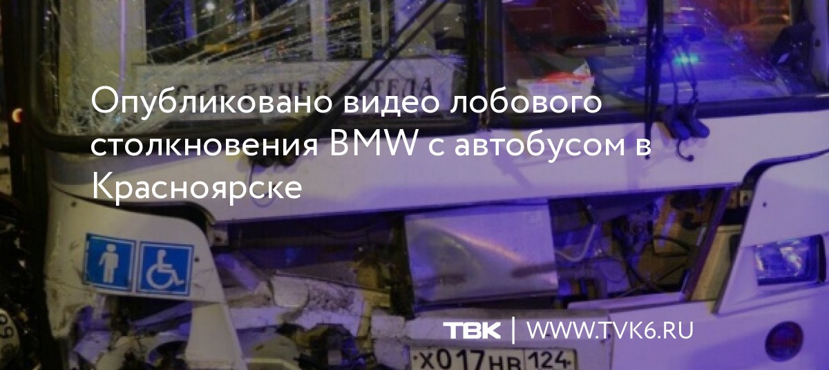 Опубликовано видео лобового столкновения BMW с автобусом в Красноярске