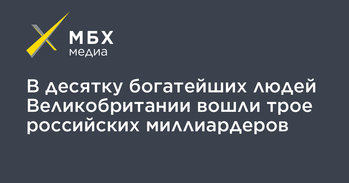 В десятку самых богатых людей Великобритании вошли трое российских миллиардеров — Алишер Усманов, Роман Абрамович и Михаил Фридман, рейтинг опубликован на сайте газеты The Sunday Times.