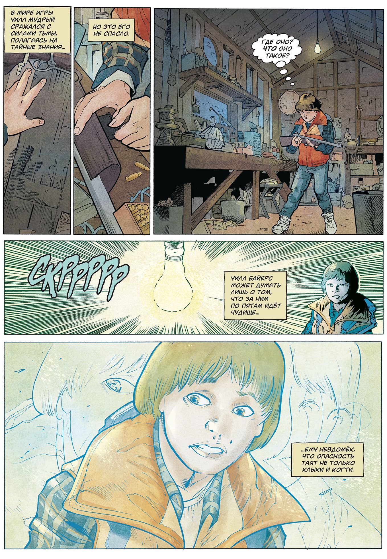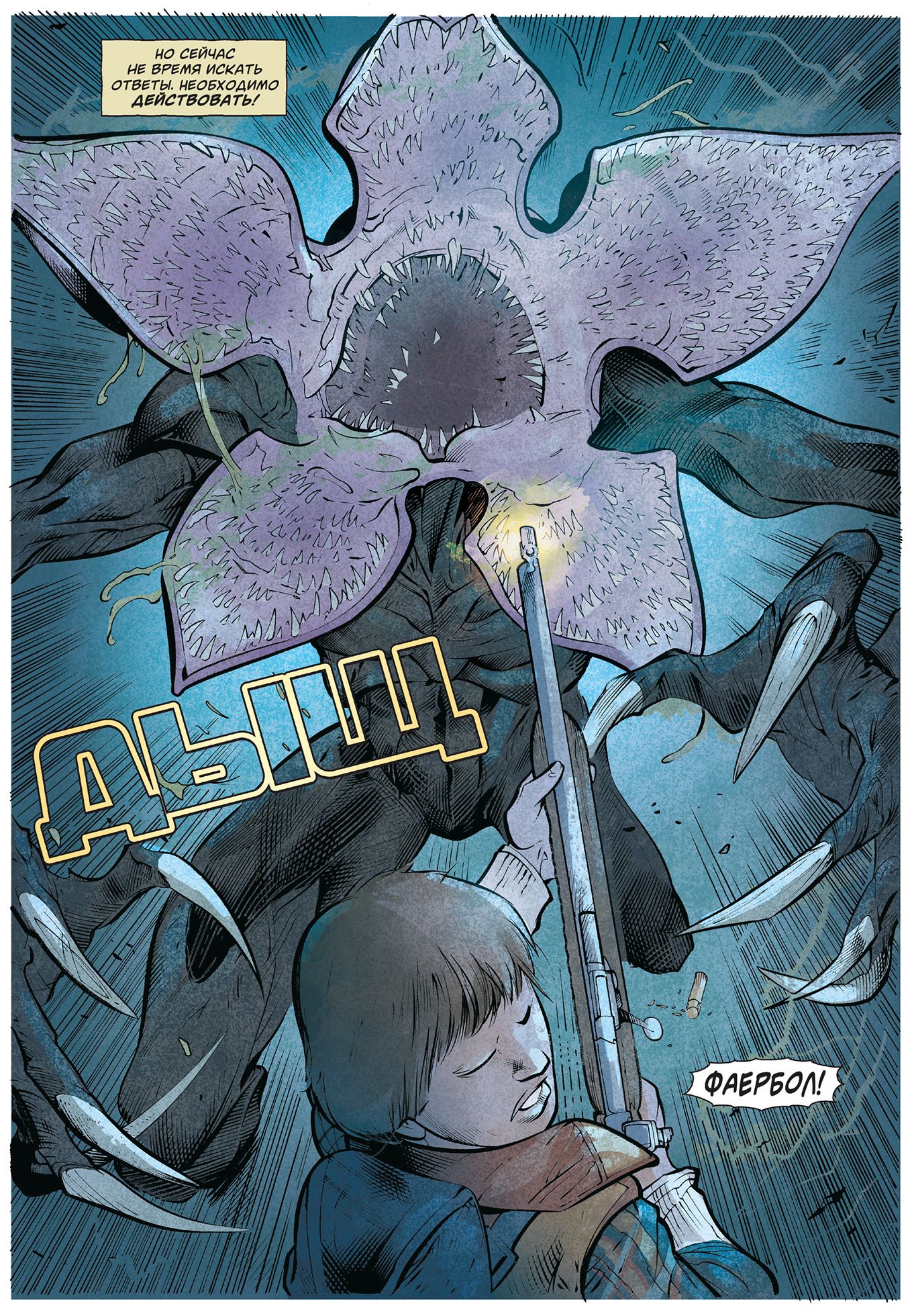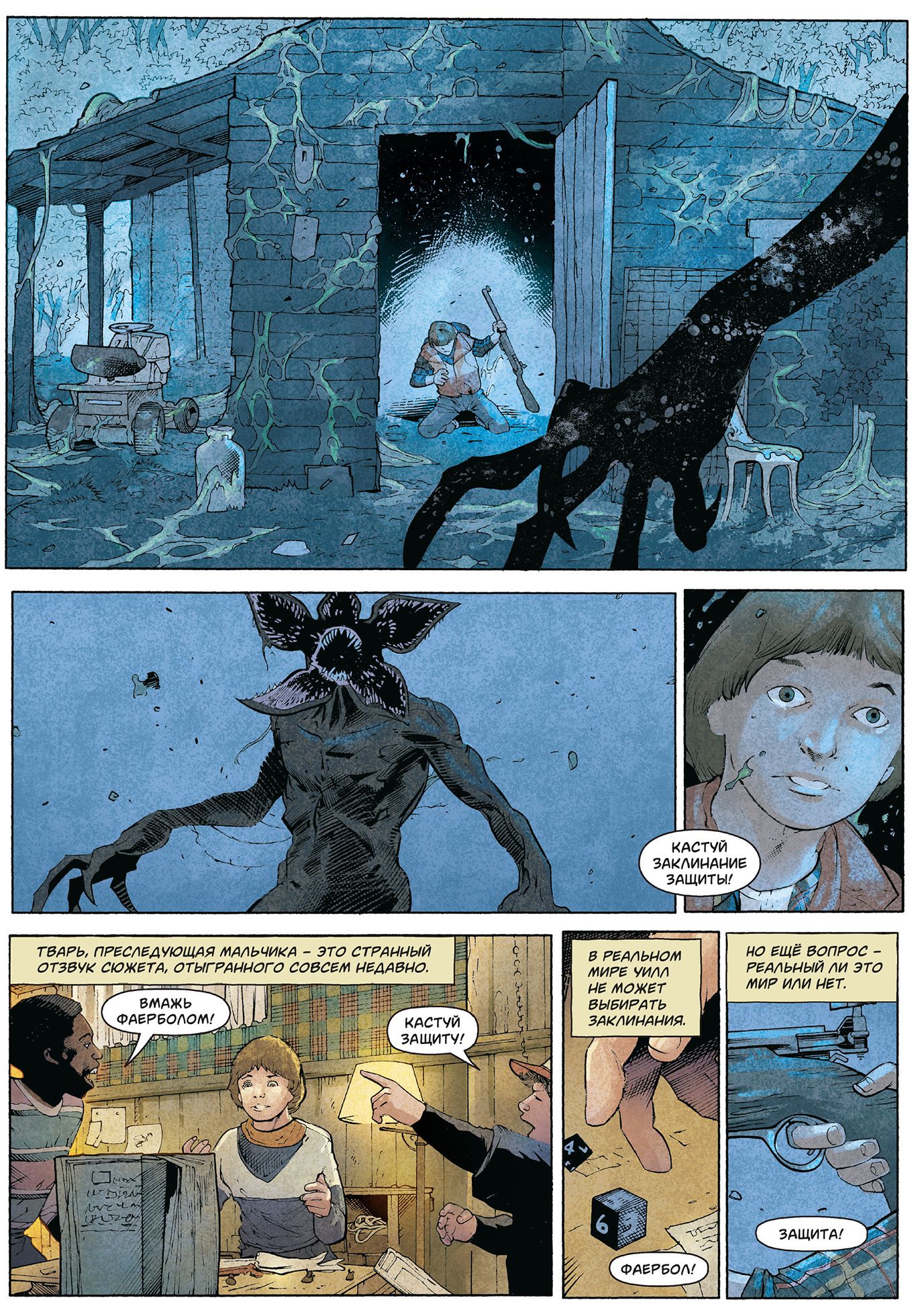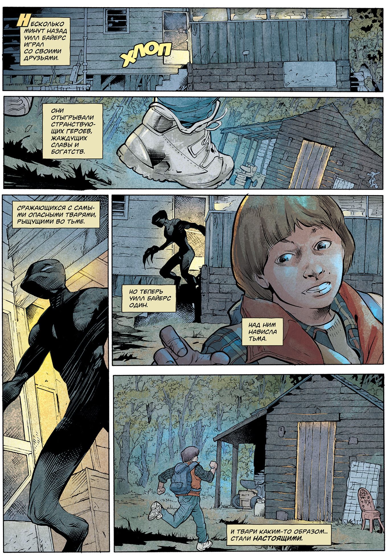 В июне издательство «Комильфо» выпустит комикс по мотивам «Очень странных дел» — одного из главных фантастических сериалов современности. Его события происходят одновременно с действием первого сезона шоу. В комиксе рассказывается, как мальчик по имени Уилл (с его исчезновения и начинается сериал) выживал в параллельном измерении, где обитают кровожадные монстры — демогоргоны. «Медуза» публикует фрагмент комикса.
