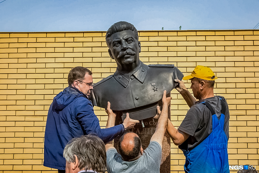 Одной из самых громких акций сталинистов в День Победы стало открытие бюста генералиссимусу в Новосибирске при прямой поддержке городских властей. Переговоры по этому поводу тянулись несколько лет. Изначально местное отделение КПРФ добивалось установки бюста в центре города, в месте, где его могут видеть все жители. Мэр города коммунист Анатолий Локоть тоже поддержал идею установки, однако в 2016 году городской худсовет отказался от этой идеи, опасаясь негативной реакции горожан и актов вандализма. Бюст тем не менее был вылеплен и хранился у местного активиста.