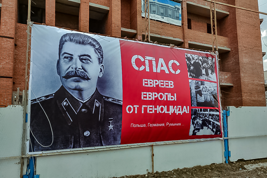 Еще раньше, 7 мая, скандал разгорелся вокруг похожей ситуации в Сургуте. Там активисты организации «Правоведы» установили большой баннер с фотографией Сталина и благодарностью вождю. Под портретом было начертано: «Спас евреев Европы от геноцида! Польша, Германия, Румыния».