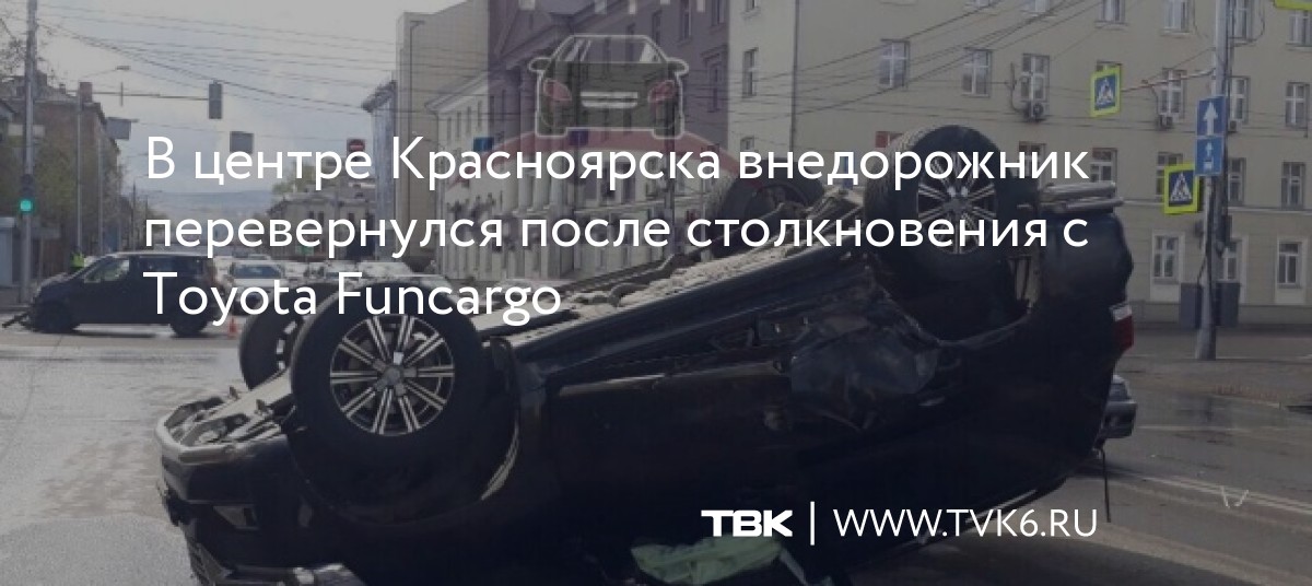 В центре Красноярска внедорожник перевернулся после столкновения с Toyota Funcargo